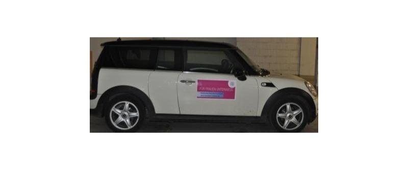 Einfach anzubringendes Magnetschild für das Auto Aufdruck "Für Frauen unterwegs"