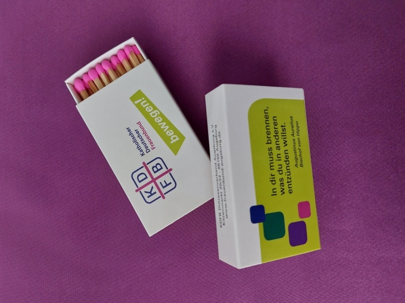Extra große Streichhölzer in 86 x 50 x 20 mm mit Aufdruck: "In dir muss brennen, was du in anderen entzünden willst" (Augustinus)